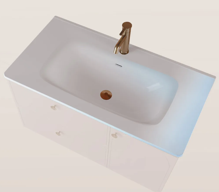一體式的陶瓷盆的親水角<23°(普通釉面約40°),污漬不易附著,牙膏漬清水一沖就凈,加深盆膽設(shè)計(jì)有效防濺水,配合寬闊置物臺(tái),洗漱用品擺放井然有序,兼顧美觀與實(shí)用。